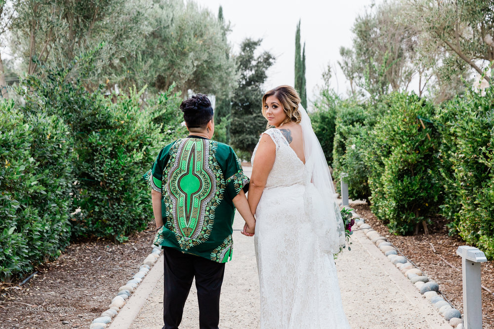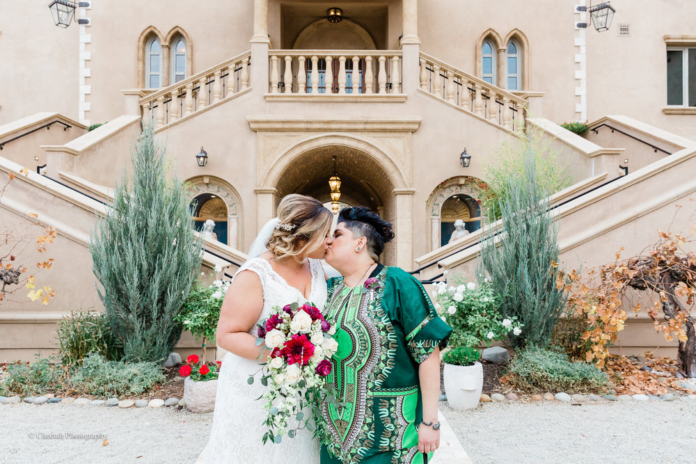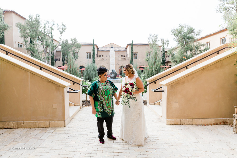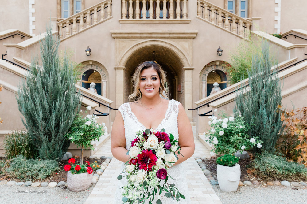 Jackie & Mireya were married on November 17th, 2018 at Allegretto Vineyard Resort in Paso Robles. The event was filled with gold, deep reds, and creams with a few skulls placed around the venue. A simple, but elegant November wedding. Photographed by Nadine Cheetah of Cheetah Photography.