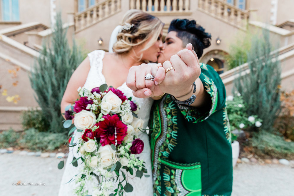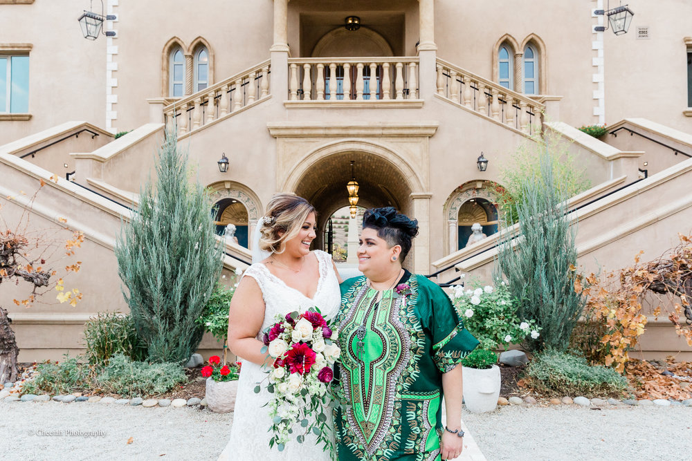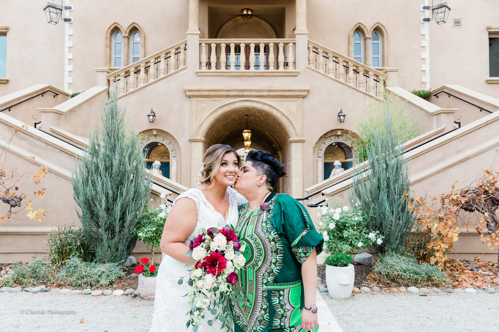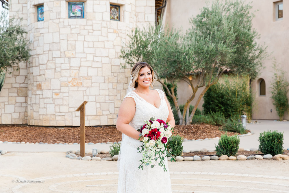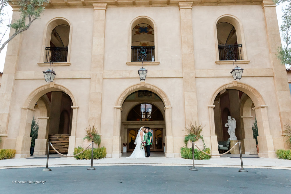 Jackie & Mireya were married on November 17th, 2018 at Allegretto Vineyard Resort in Paso Robles. The event was filled with gold, deep reds, and creams with a few skulls placed around the venue. A simple, but elegant November wedding. Photographed by Nadine Cheetah of Cheetah Photography.