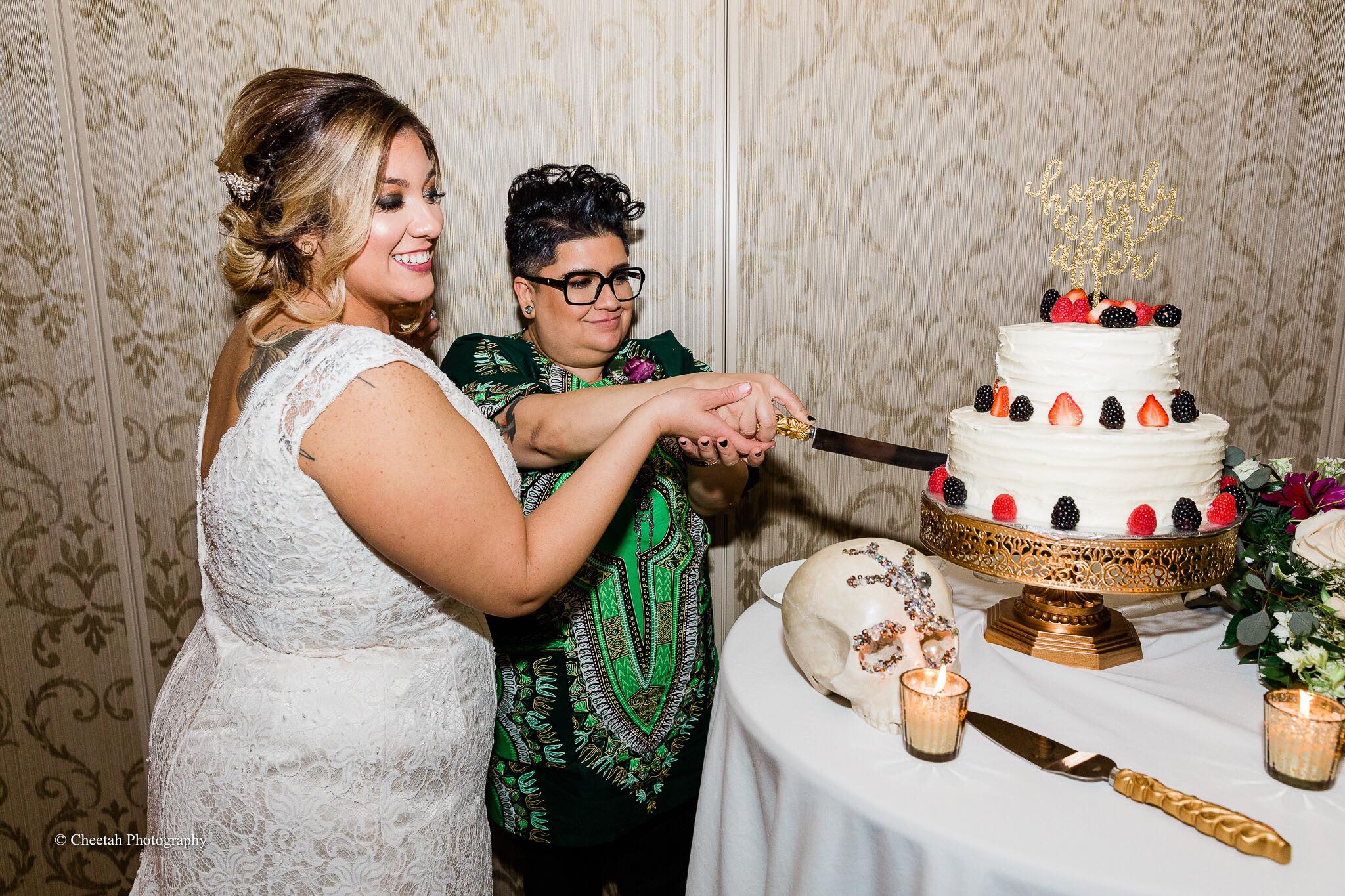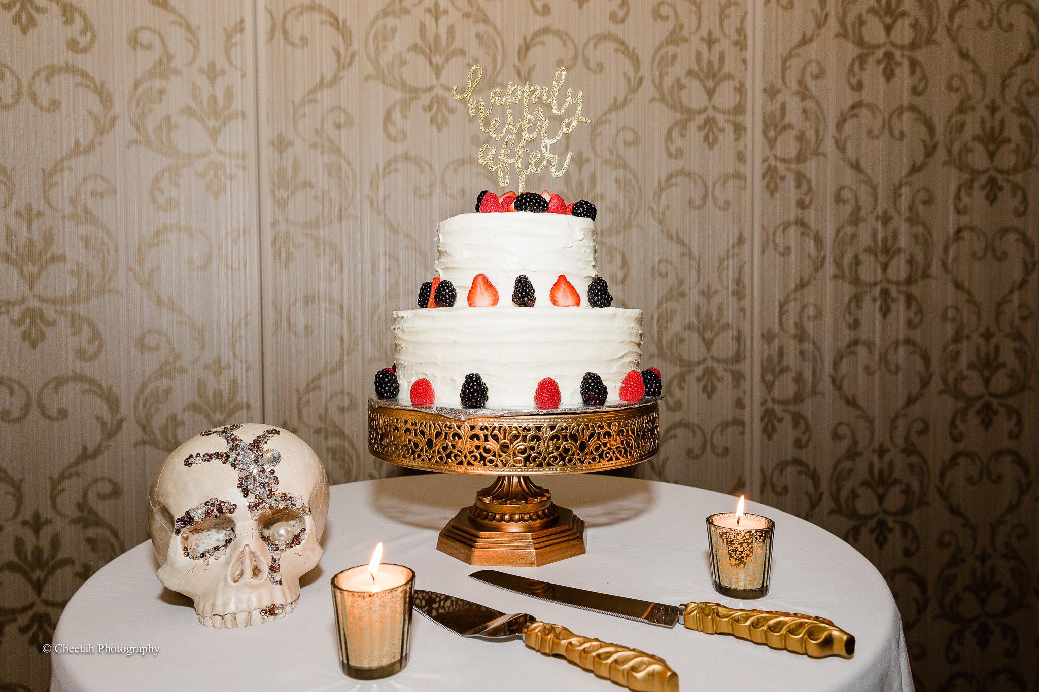 Did you have a Theme / Color Scheme in mind or did you wing it? I wouldn’t call it a theme. We had skulls around our venue and our colors were gold, deep reds, and creams. It was very simple, but elegant.