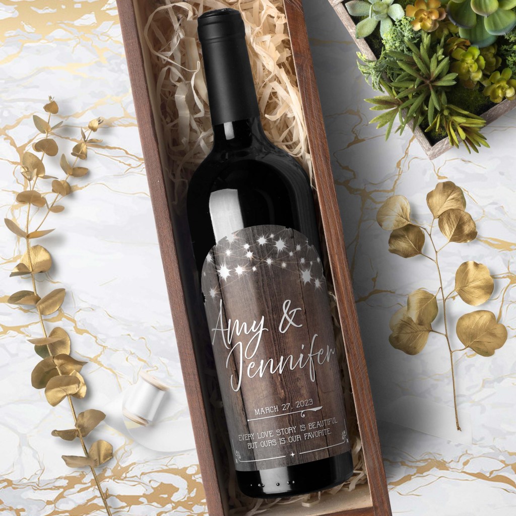 If you’re in a similar situation, fret not! Personalizing your wine bottles is a wonderful way to add a personal touch to your special day. EVERY label we sell can be customized to fit your wedding day. To help inspire you, we’ve put together some fun and creative ideas for personalizing wine bottles for a gay wedding.