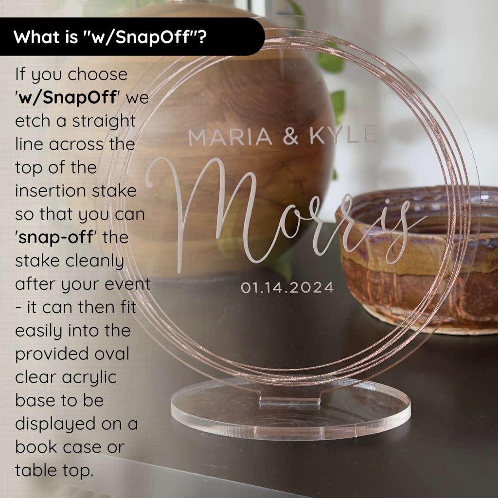 Here’s where thoughtful design meets practicality: opt for the snap-off stake feature, and you can easily remove the insertion stake after your wedding. This transforms your cake topper into a frameable keepsake or standalone display piece—perfect for your home, office, or alongside your preserved wedding bouquet.